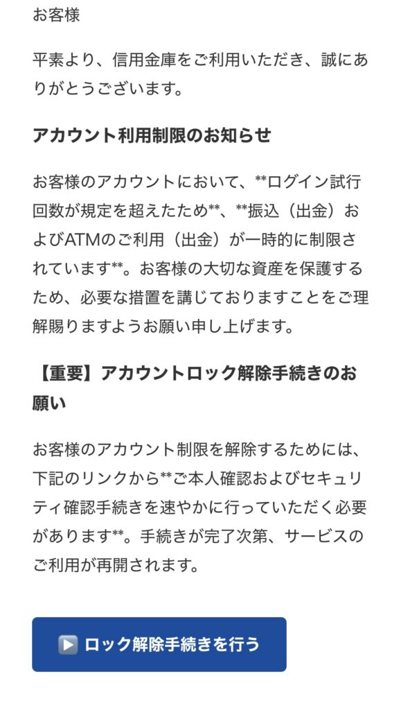 未分類 全国信用金庫協会からの詐欺メールにご注意を!! 2025.10.31 Post Share Hatena Line RSS feedly Pin it note 記事のタイトルとURLをコピーする また怪しいメールが届きました。 送信元:info_cocoro-m@sharp.co.jp 件名:【信用金庫】振込(出金)、ATMのご利用(出金)利用停止のお知らせ 内容 メルカリから来る怪しいメールにご注意を! 前の記事